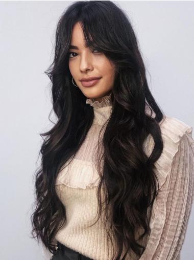 Wavy Black Wig 24" Layered Remy Human Hair, Monofilament Cap